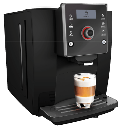 This beauty, the Mythos X1 has a built-in, adjustable coffee grinder, as well as an automatic milk frother. The milk frother which draws milk from a separate container using a small pipe. With just a touch of a button, the machine cleans itself! This fully automatic piece of magic can handle up to 80 cups per day